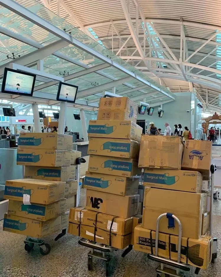 由温州市精诚国际旅行社有限公司、浙江飞扬联创旅游有限公司温州分公司等共同组团的巴厘岛“IN海岛”团的5位领队在当地地接社和导游的帮助下,着手分工采购,6天时间内,5名导游筹集了38箱、共计21300只口罩,其中包括1000多只N95口罩,截止2月1日漂洋过海的2万多只口罩已全部捐赠。