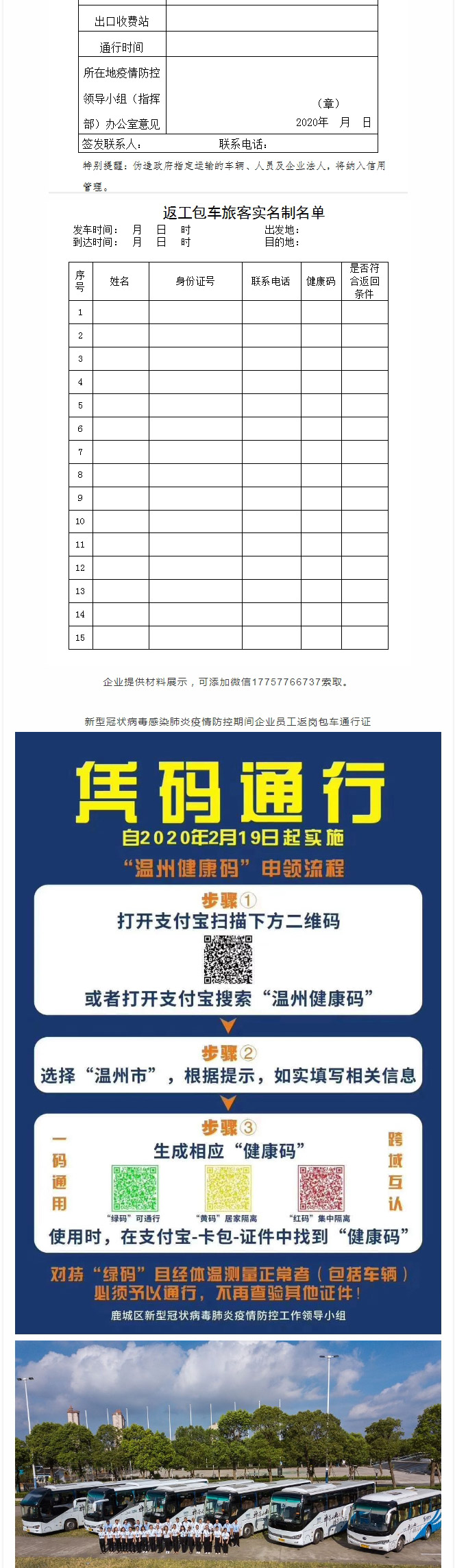 温州市交通运输局文件指明浙江浪漫国际旅游有限公司浪漫巴士车队为疫情期间指定包车车队。鹿城出台“35条” 支持中小企业共渡难关,第十一条措施显示, 加大返工路费补贴 企业复工后,鼓励更多外地务工人员来鹿就业,企业出资包车接员工返鹿的,以“你来鹿城,我出路费”的模式按政府、企业2:1比例共同分担解决。