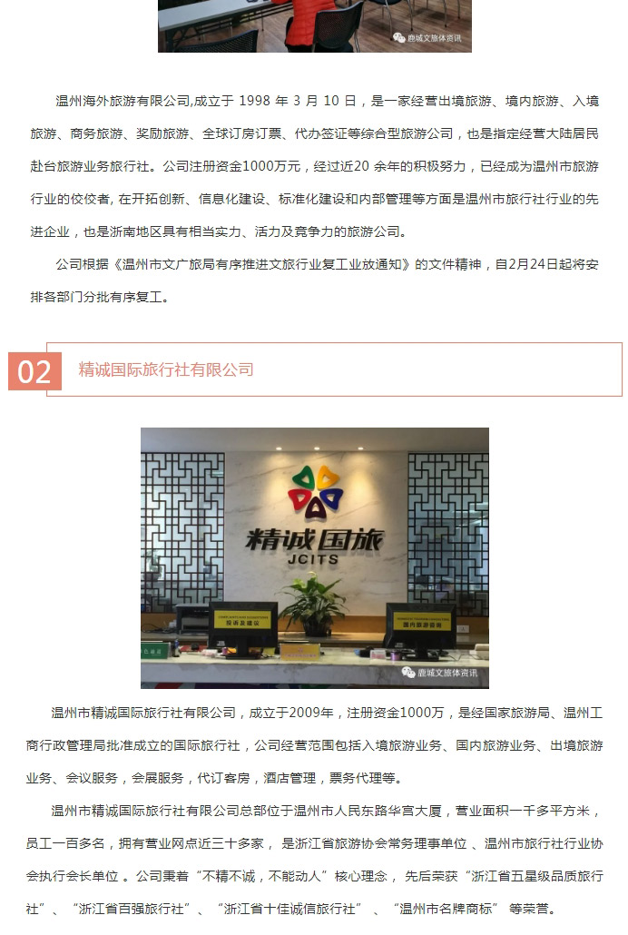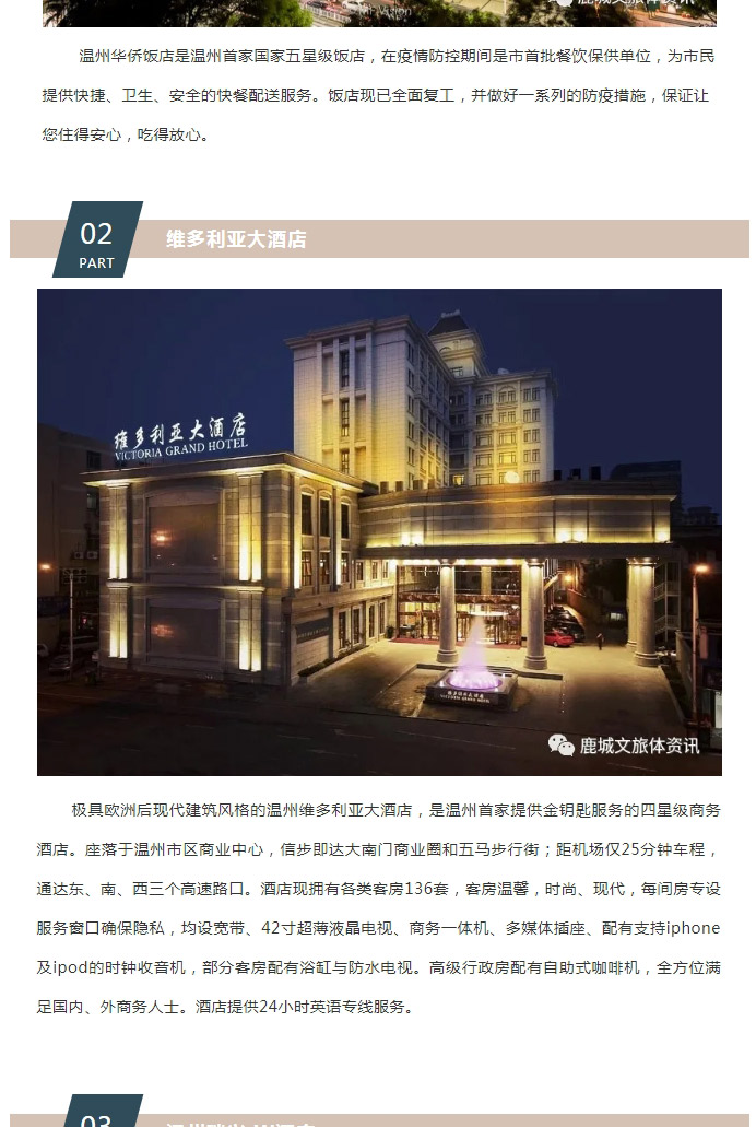 鹿城区有3家星级酒店 5家星级旅行社 复工啦!